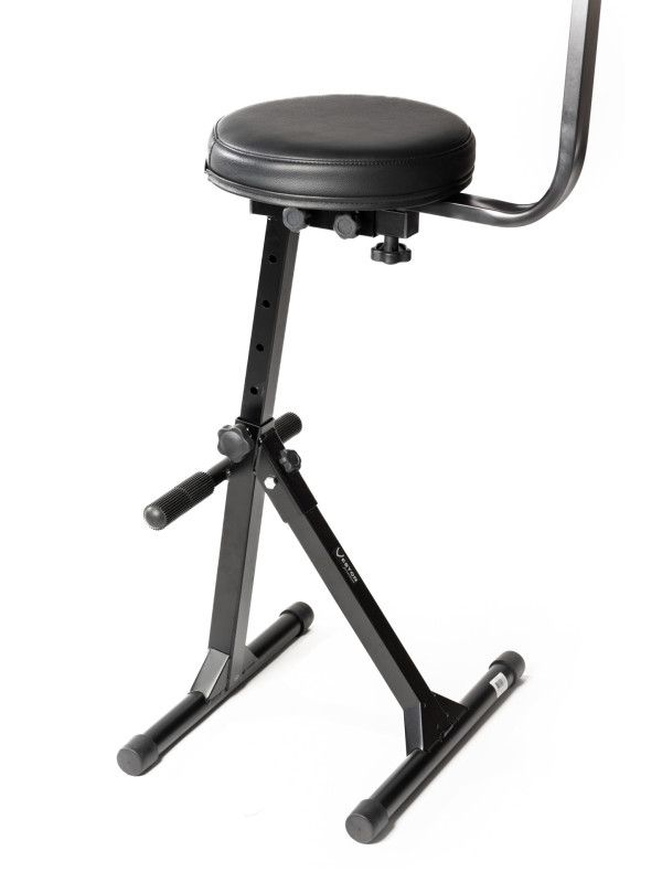 The Veston GT-6 is a keyboard and guitar throne designed for musicians who play both keyboards and guitars. It has adjustable heights, allowing for customization to suit different needs. The seat has a diameter of 32 cm, ensuring comfort during playing.