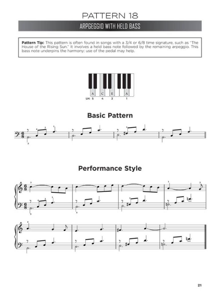 Glow-up your left hand with these essential accompaniment patterns for piano! If you're new to the piano First 50 Left-Hand Patterns will help you to play your favourite music, with must-know patterns for the left hand used in pop, rock, blues, soul, folk, and classical styles. Each is presented in staff notation alongside keyboard images, helpful tips, and song references to get you playing the music you love faster than ever before!