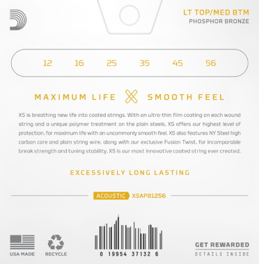 • Струните XS Phosphor Bronze имат най-дълъг живот от всички акустични струни D’Addario, благодарение на ултратънкото XS филмово покритие.