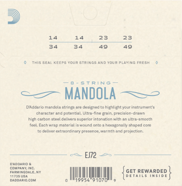 - EJ72 е комплект тънки струни, предназначени за Mandola. Откакто D'Addario представи струните за китара от фосфорен бронз през 1974 г., те са синоним на топъл и добре балансиран акустичен тон.